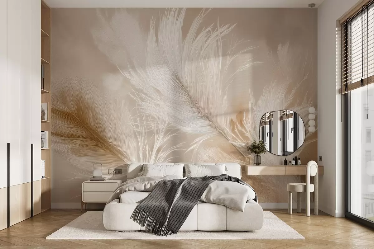 Murais de parede Penas esvoaçantes sobre um fundo bege Nr. w09102