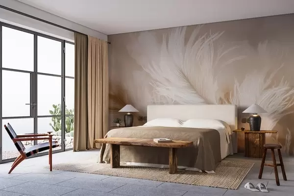 Murais de parede Penas esvoaçantes sobre um fundo bege Nr. w09102