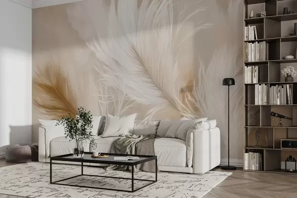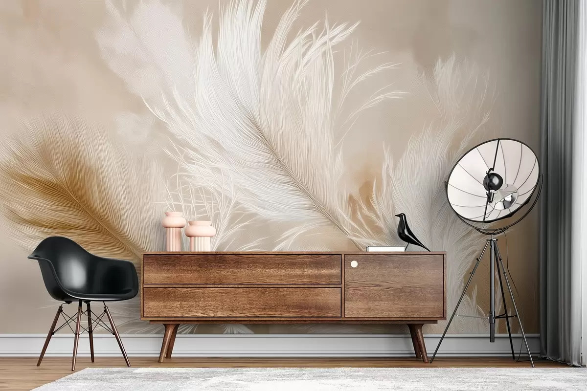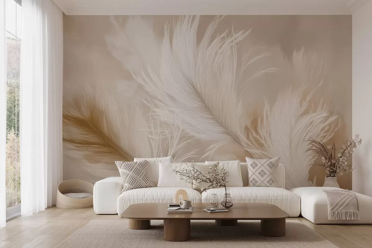 Murais de parede Penas esvoaçantes sobre um fundo bege Nr. w09102