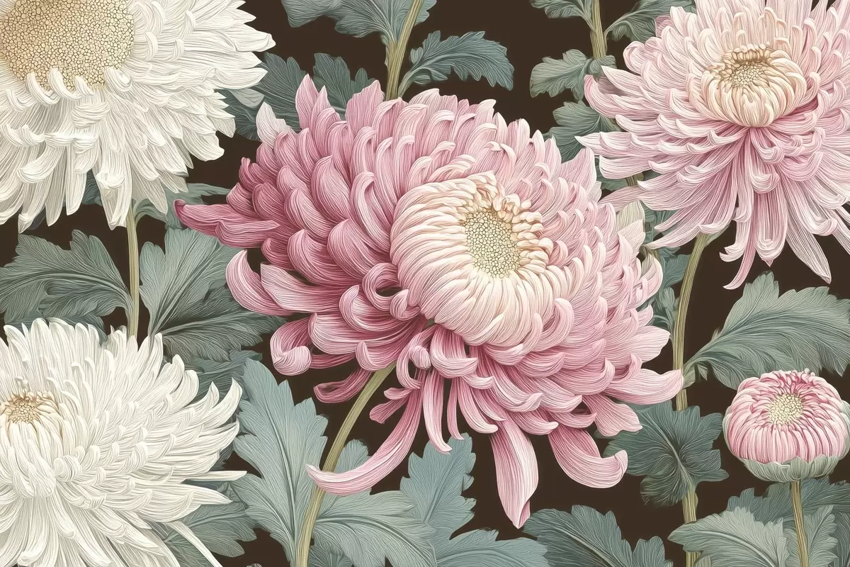 Murais de parede Grandes orquídeas cor-de-rosa e brancas com folhas sobre um fundo escuro Nr. w09125