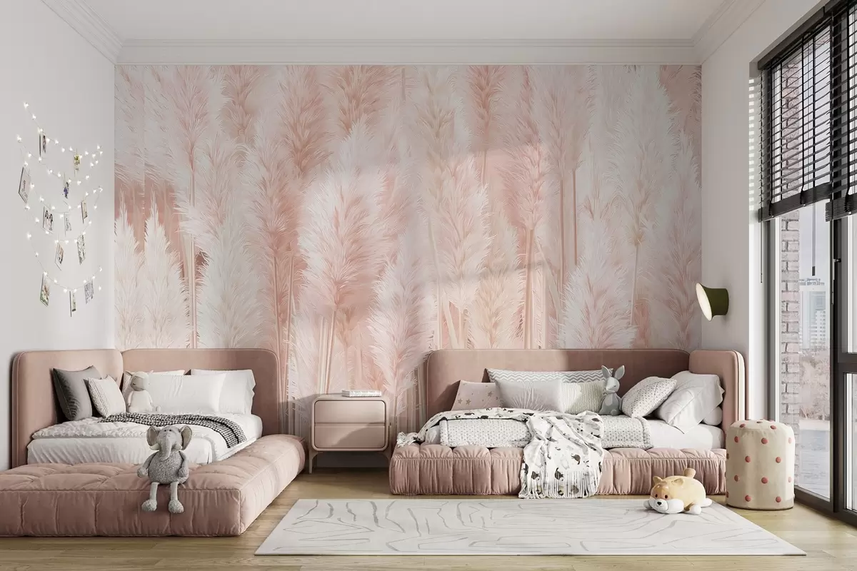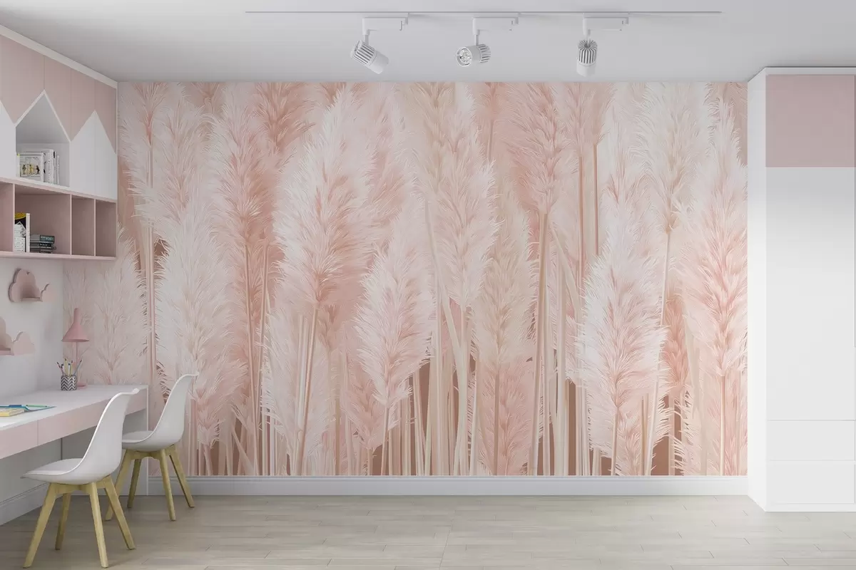 Murais de parede Erva-dos-pampas em tons suaves de rosa Nr. w09126v1
