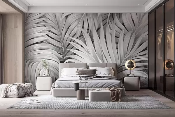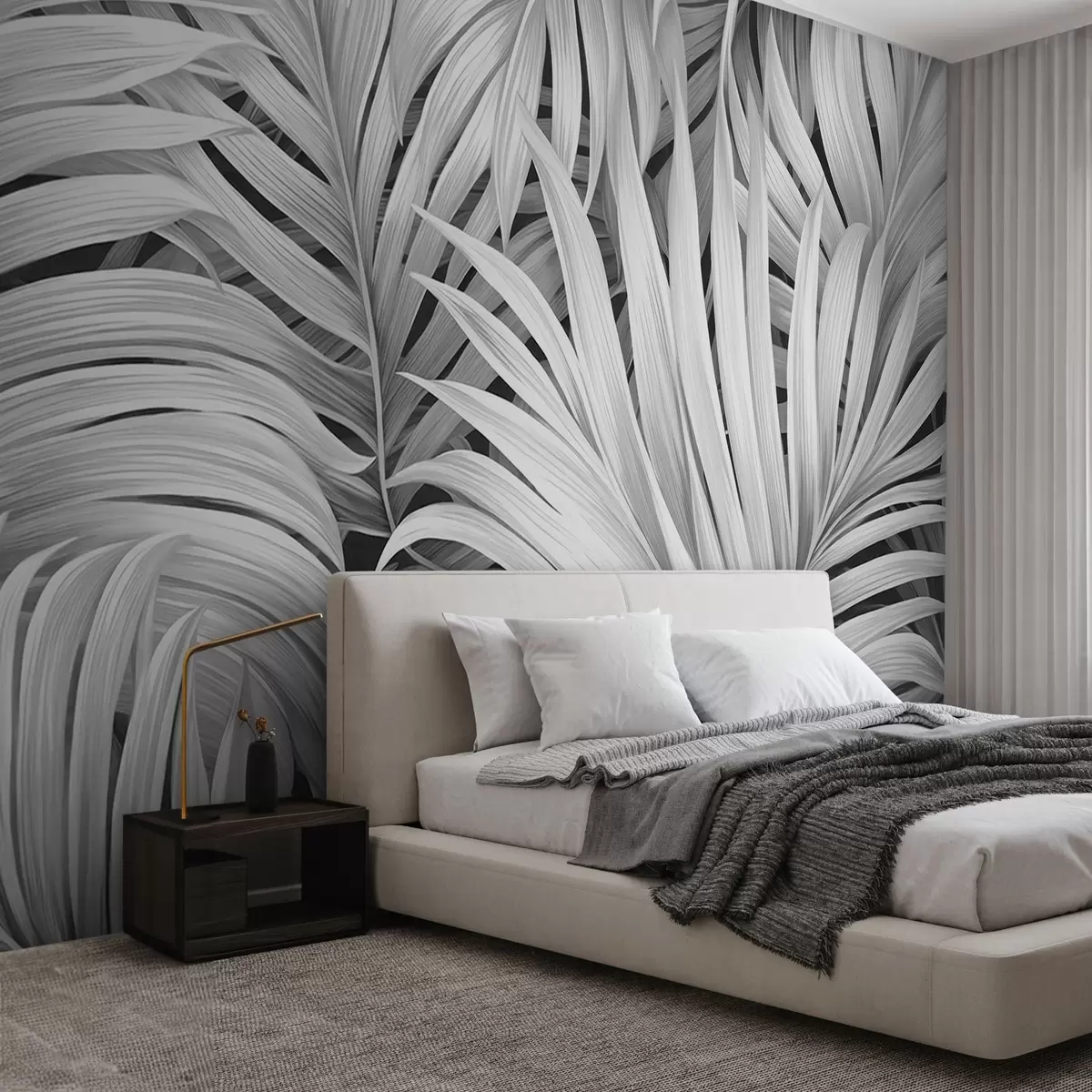 Murais de parede Folhas de palmeira tropical com textura monocromática, criando um estampado tropical e botânico Nr. w09145