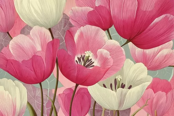 murais de parede Papoilas vivas com folhas gráficas no fundo w09152