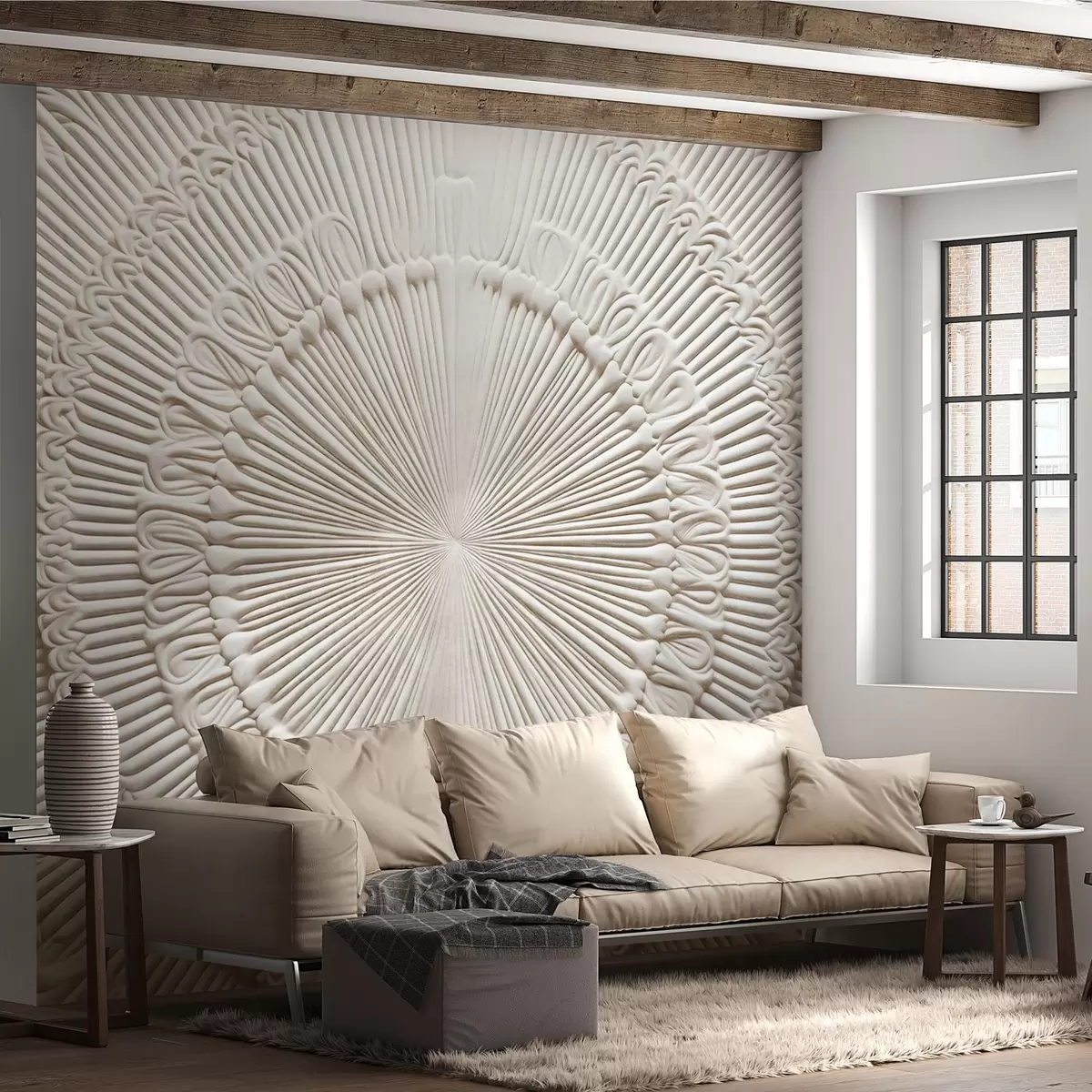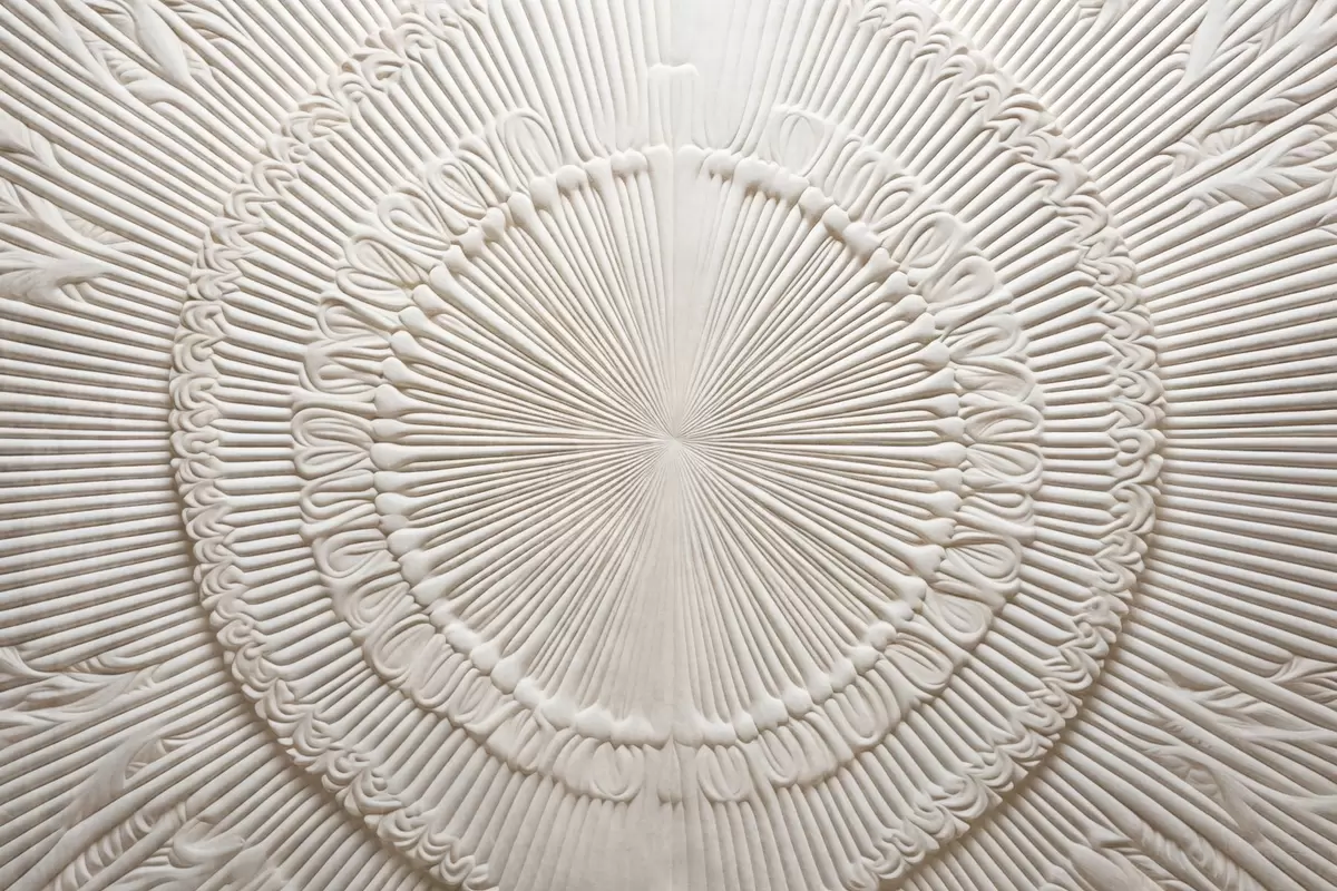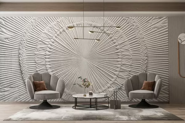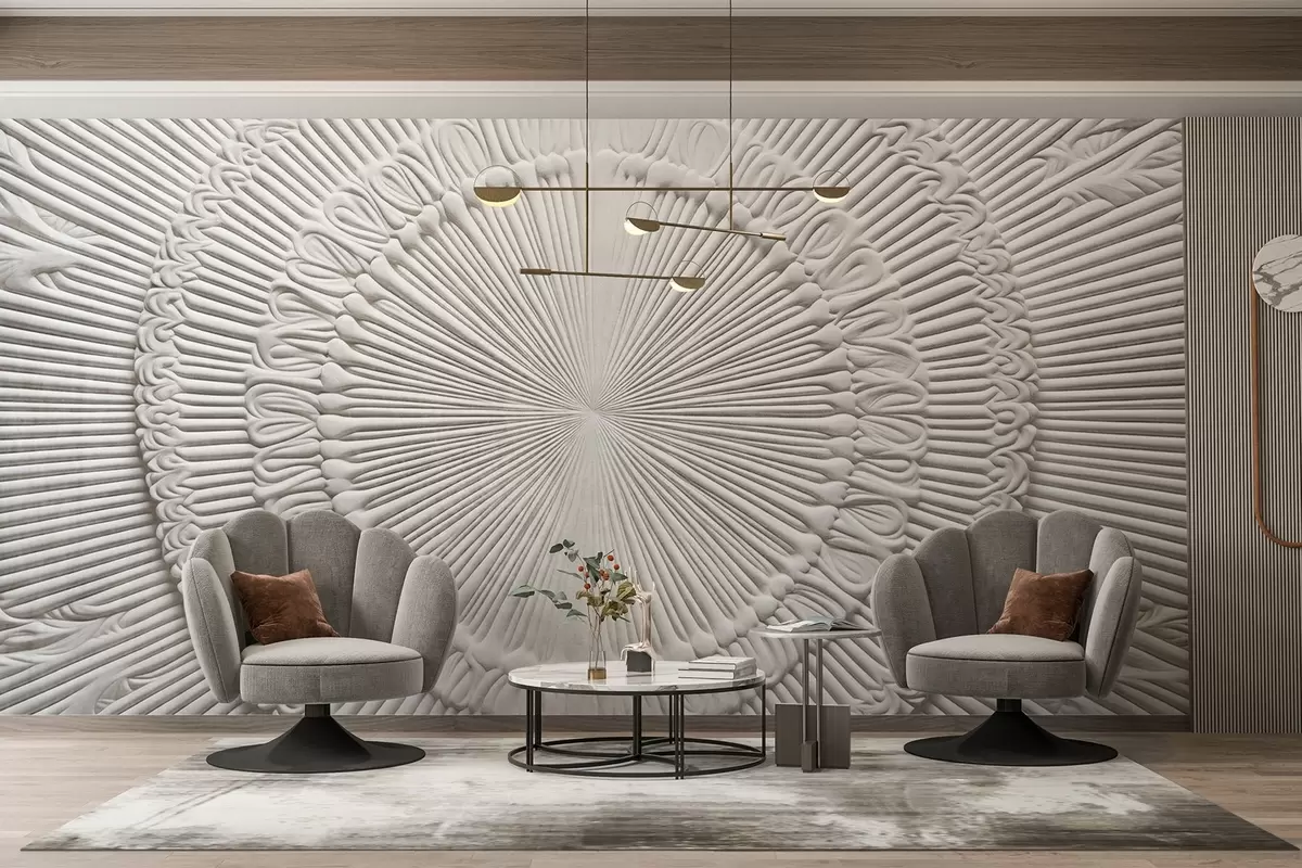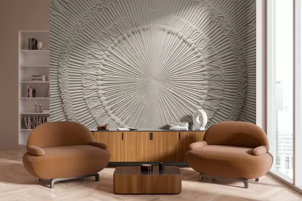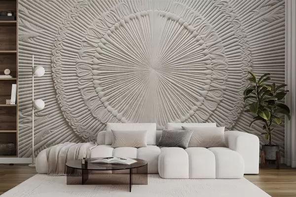 Murais de parede Impressão circular abstrata texturada com linhas radiais e elementos decorativos, desenho simétrico, textura em relevo Nr. w09154