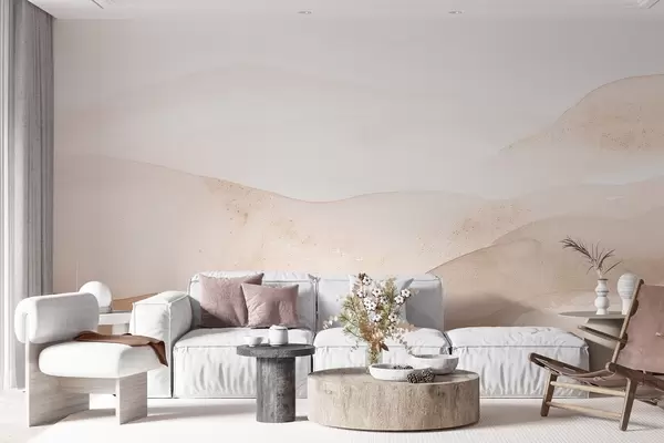 Murais de parede Montanhas em estilo aguarela em tons de bege claro Nr. w09223