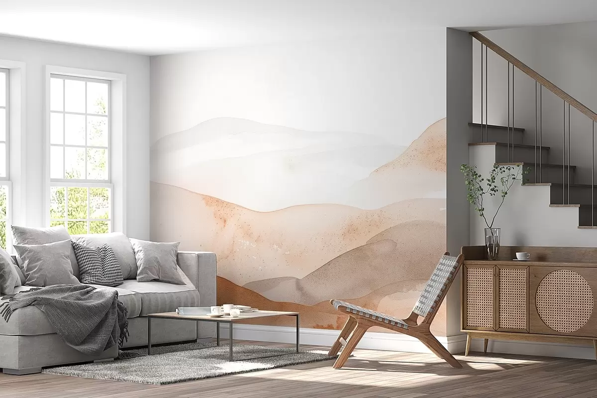 Murais de parede Montanhas com efeito de colina de aguarela em tons quentes Nr. w09223v1