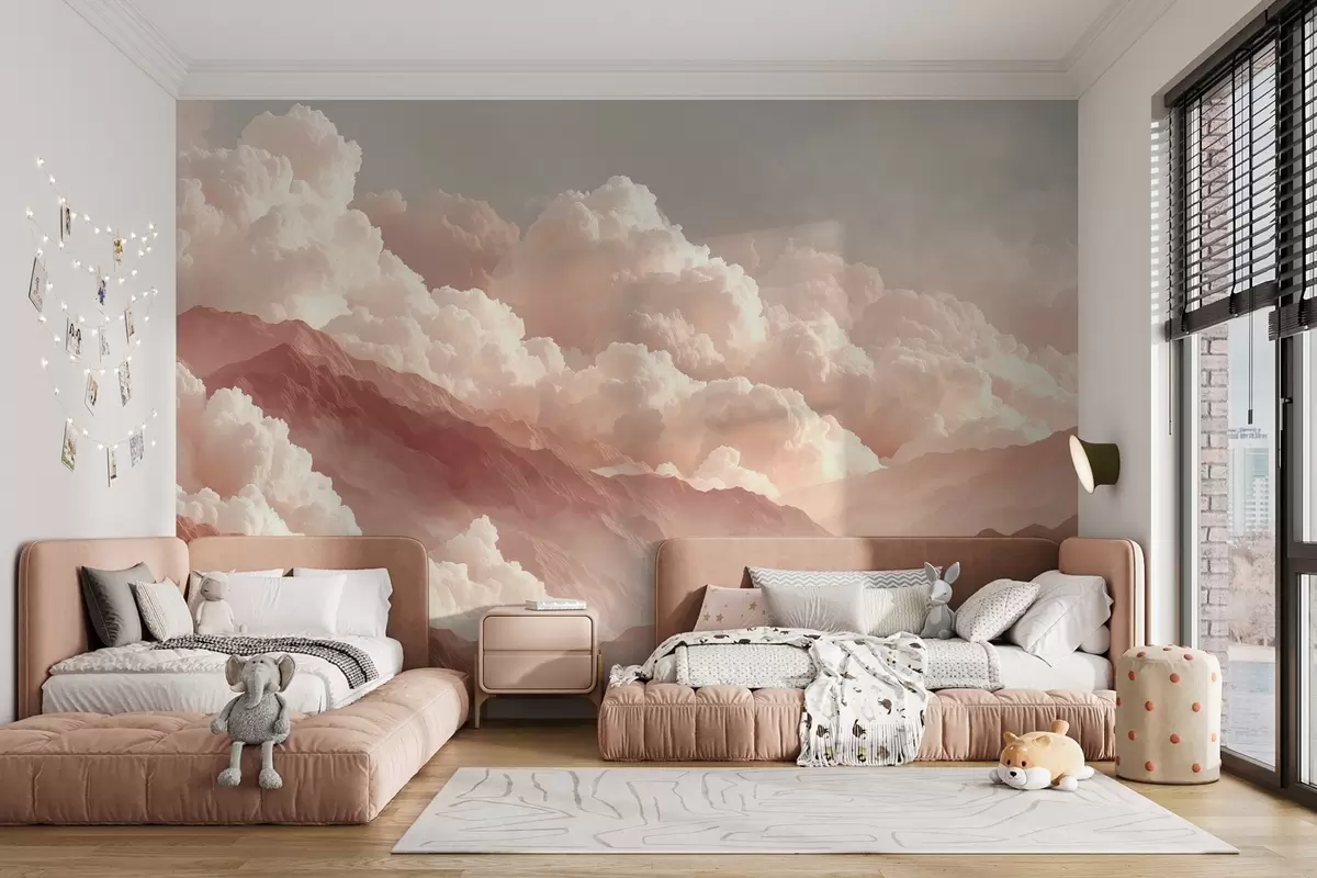 Murais de parede Nascer do sol quente sobre as montanhas com nuvens fofas Nr. w09226
