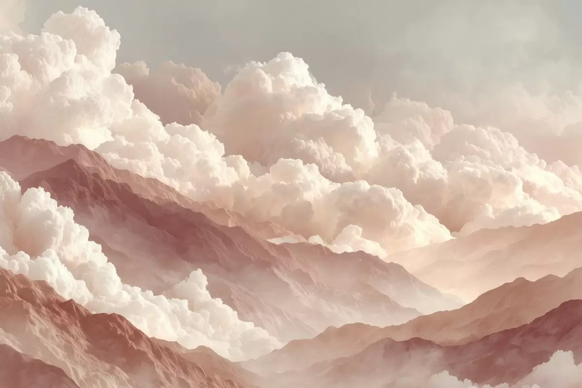 Murais de parede Nascer do sol quente sobre as montanhas com nuvens fofas Nr. w09226