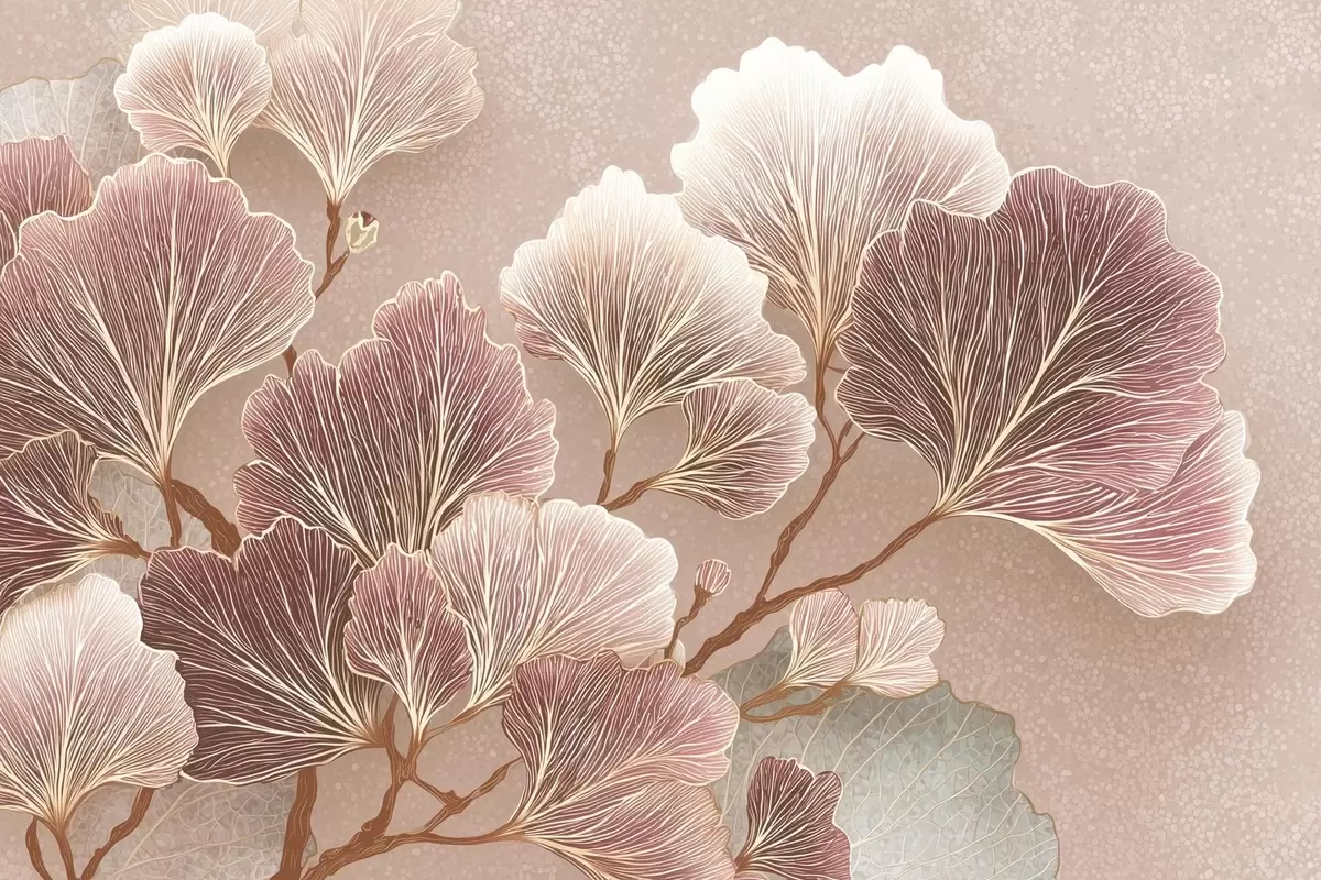 Murais de parede Ramo de folhas em tons de rosa e roxo Nr. w09249