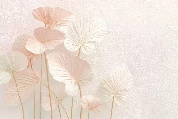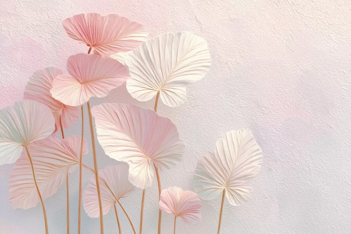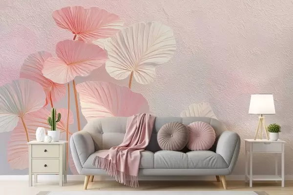 Murais de parede Grandes folhas tropicais elegantes em tons suaves de rosa e azul Nr. w09252