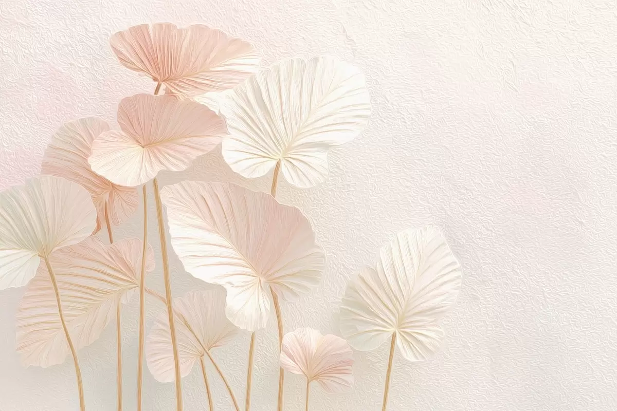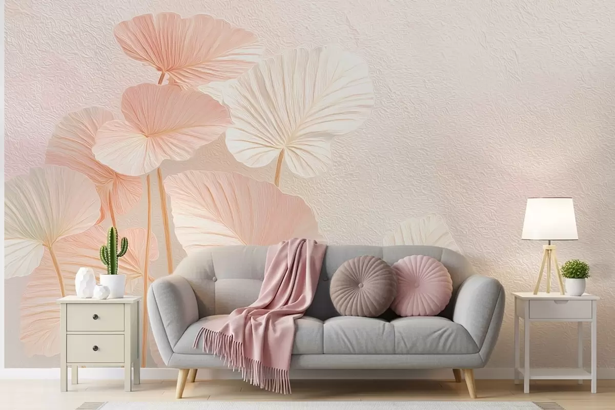 Murais de parede Grandes folhas tropicais elegantes de cor rosa delicada Nr. w09252v1