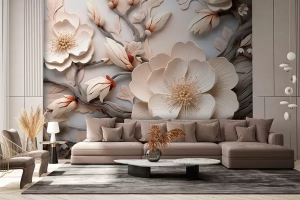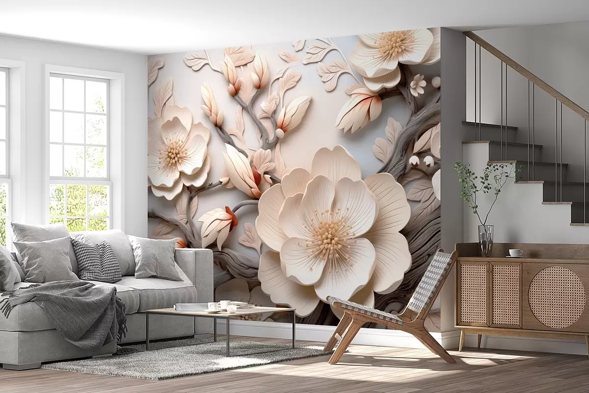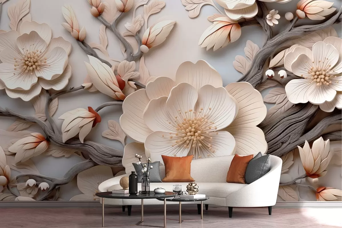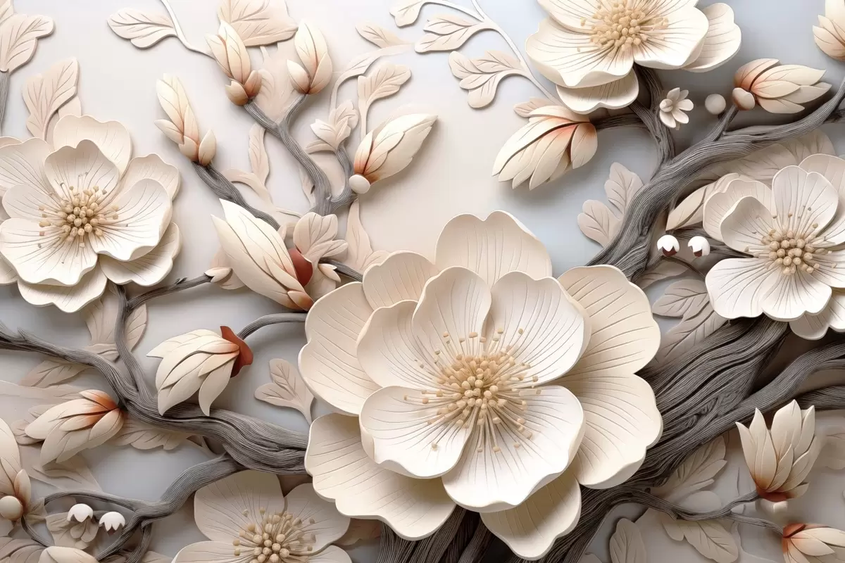 Murais de parede Flores e ramos volumétricos em tons claros Nr. w09272