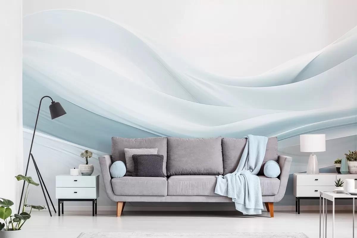 Murais de parede Ondas de tecido azul em estilo abstrato minimalista Nr. w09279v2