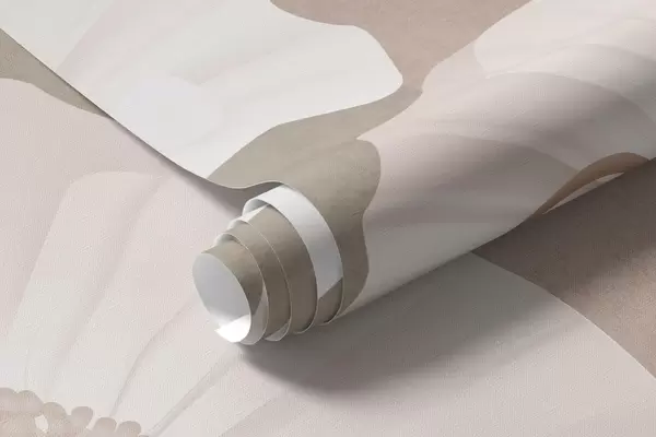 murais de parede Papoilas em tons de branco e bege com formas geométricas no fundo, círculos e arcos, estilo minimalista, cores suaves w09289