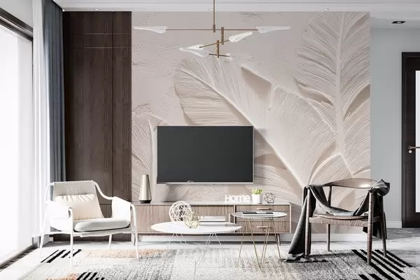Murais de parede Folhas de relevo em tons quentes de bege e areia Nr. w09307v1