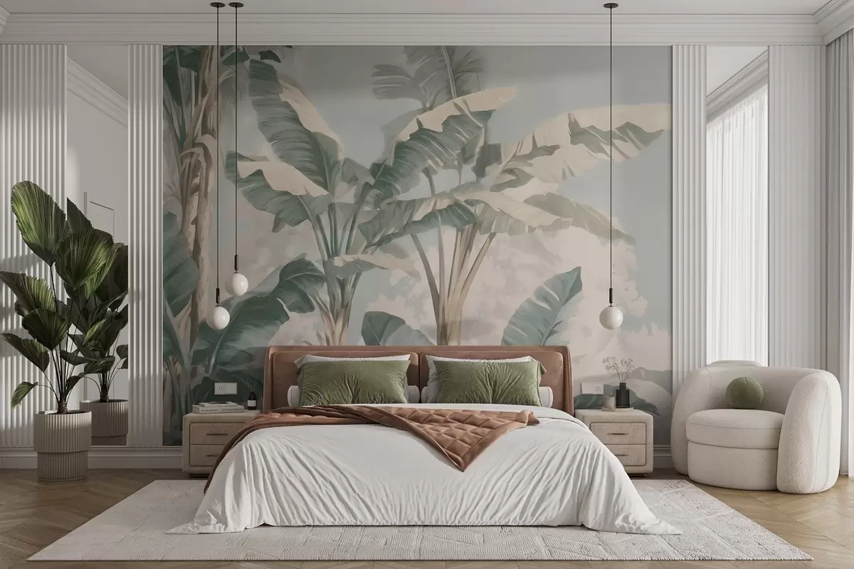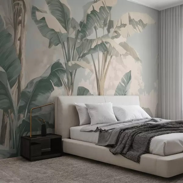 Murais de parede Folhas de bananeira tropical em tons pastel suaves Nr. w09311
