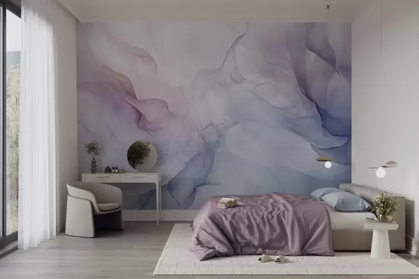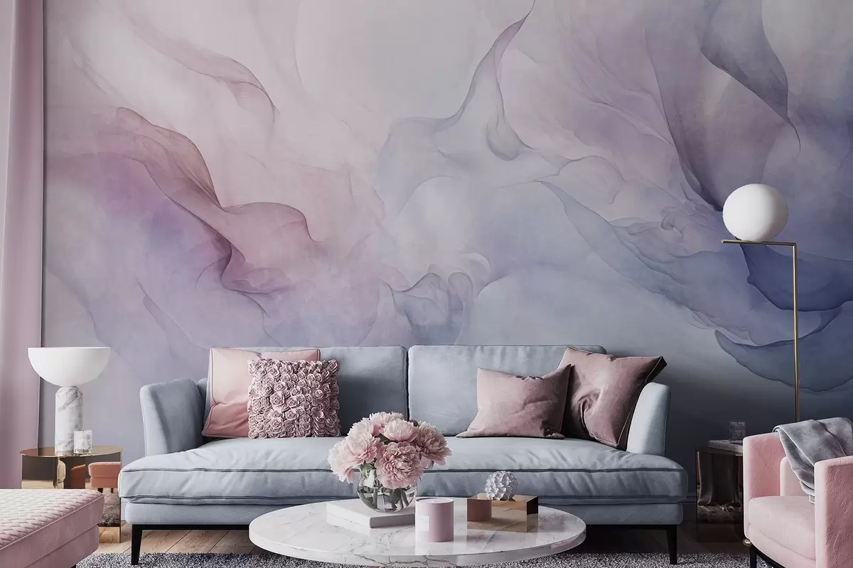 Murais de parede Pintura abstrata texturada com tons pastel fluidos de rosa, roxo e azul, criando um efeito suave Nr. w09318