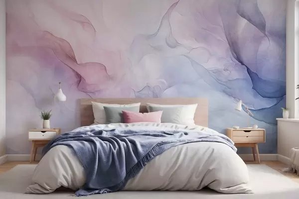 Murais de parede Pintura abstrata texturada com tons pastel fluidos de rosa, roxo e azul, criando um efeito suave Nr. w09318