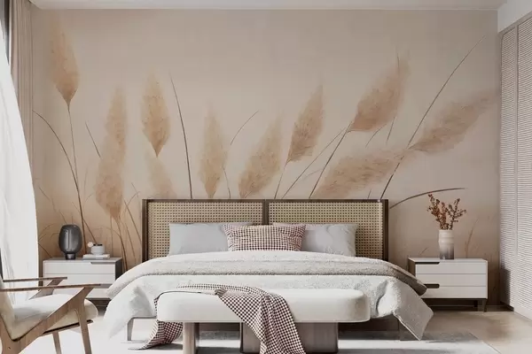 Murais de parede Erva-dos-pampas bege suave no campo Nr. w09324