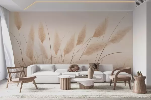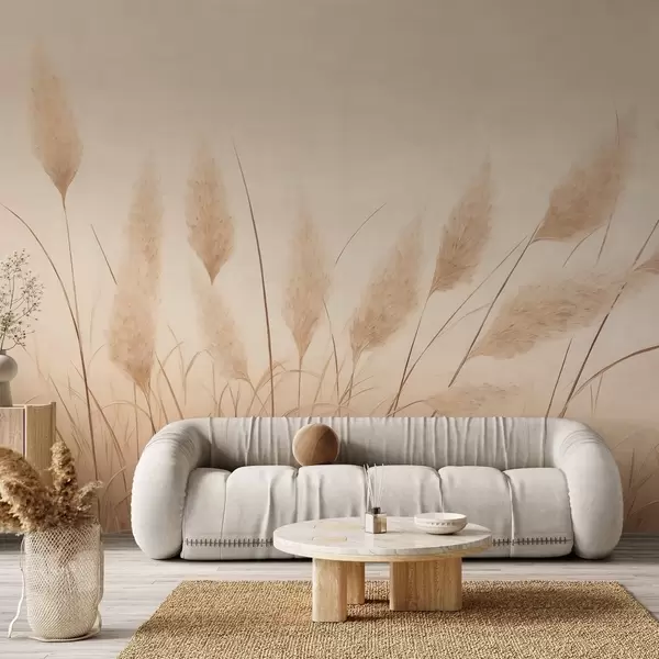 Murais de parede Erva-dos-pampas bege suave no campo Nr. w09324