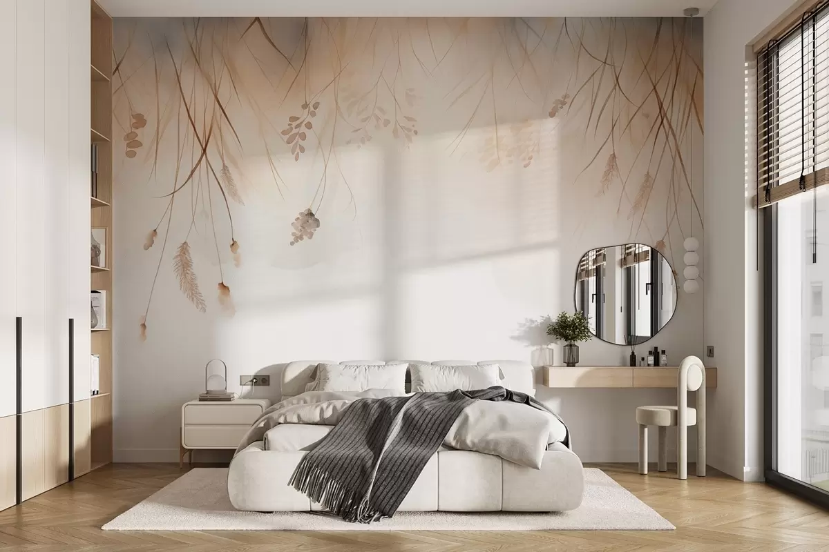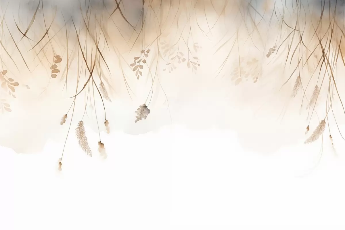 Murais de parede Taboas e espigas de cereal em tons suaves de bege e castanho Nr. w09328