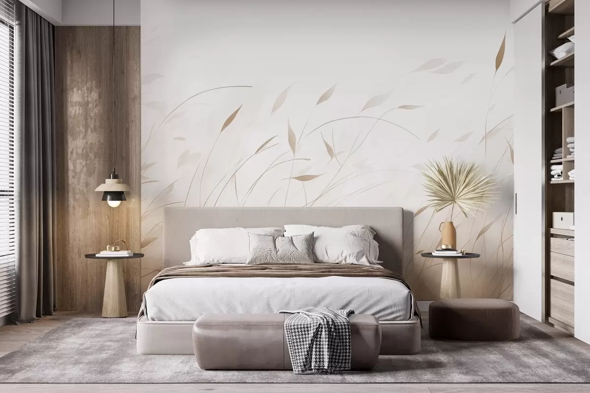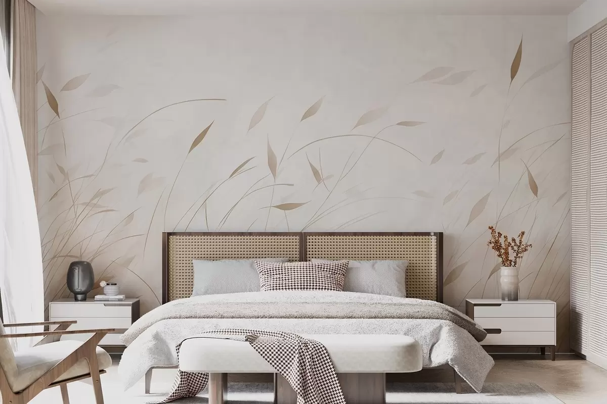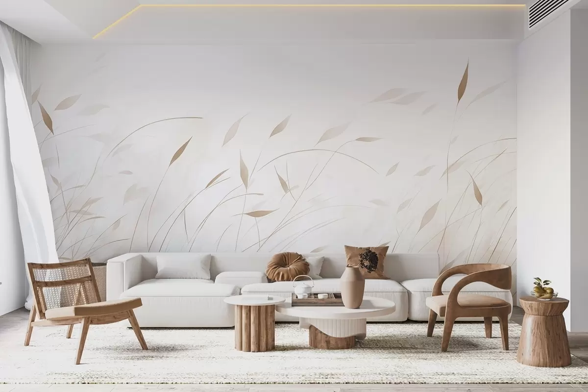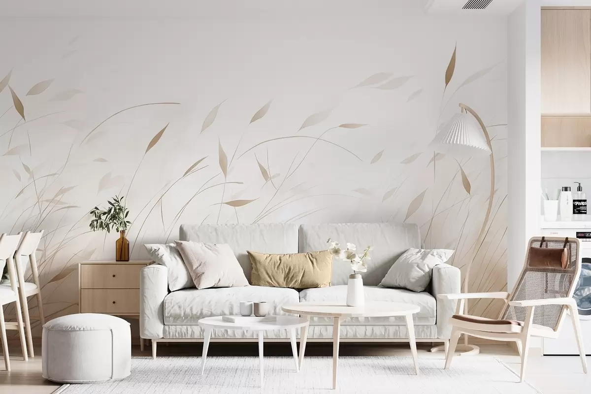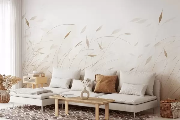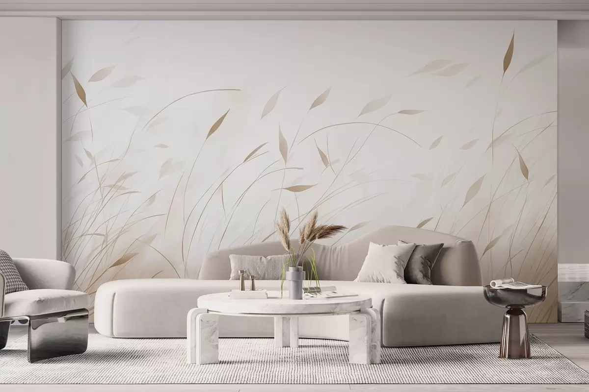 Murais de parede Grama ao vento em estilo aquarela em tons de bege Nr. w09331v1