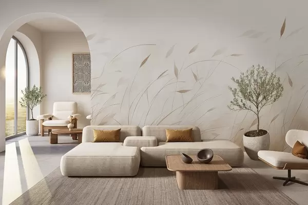 Murais de parede Grama ao vento em estilo aquarela em tons de bege Nr. w09331v1