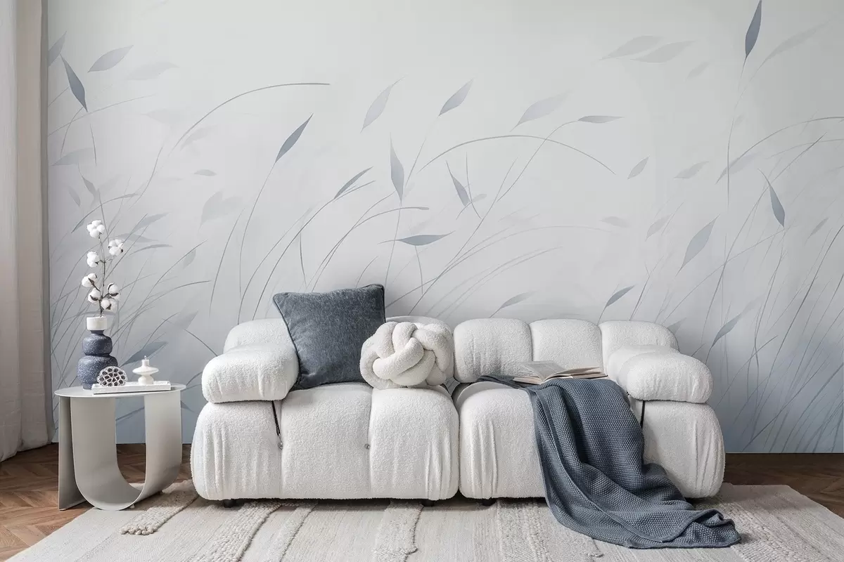 Murais de parede Relva ao vento em estilo aquarela em tons de azul Nr. w09331v2