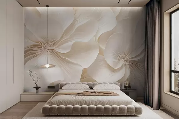 Murais de parede Grande plano de flores de textura cremosa com pétalas delicadas e fluidas, criando um arranjo floral suave, elegante e texturado Nr. w09346