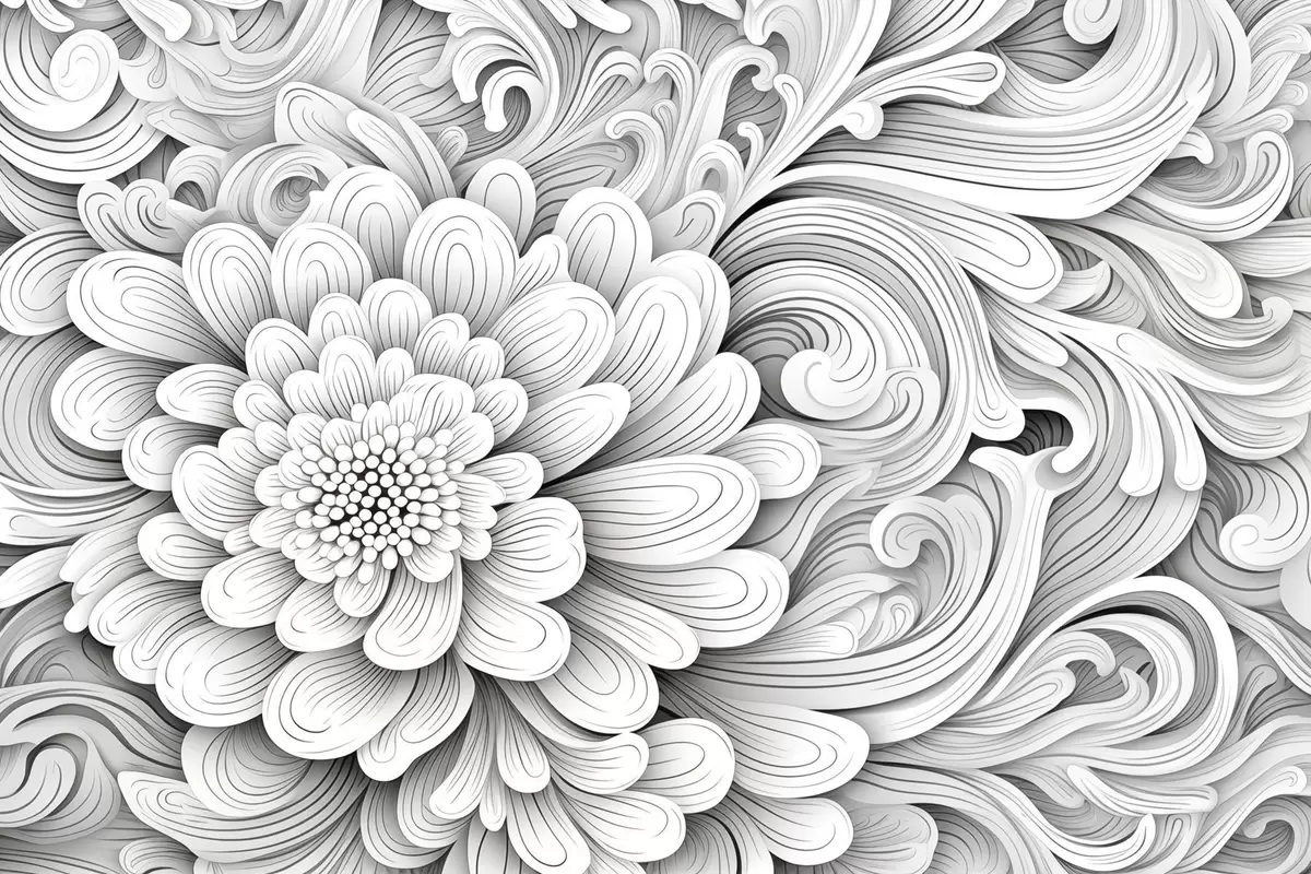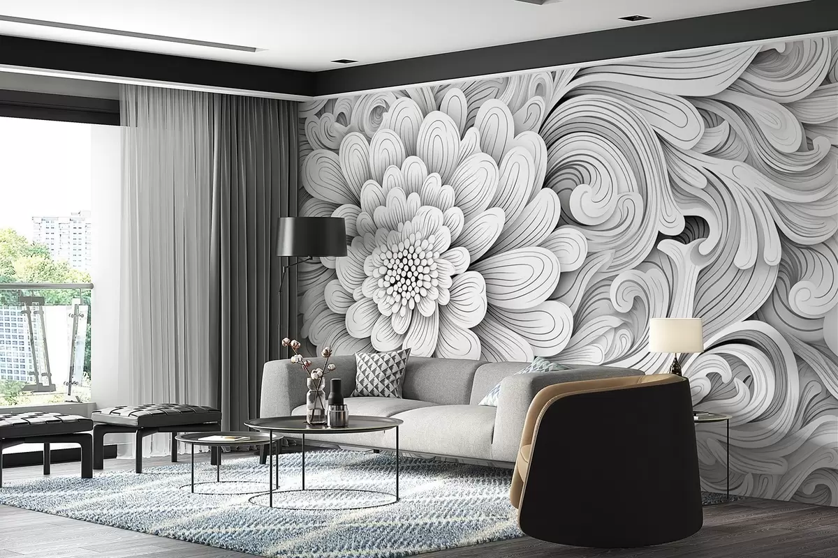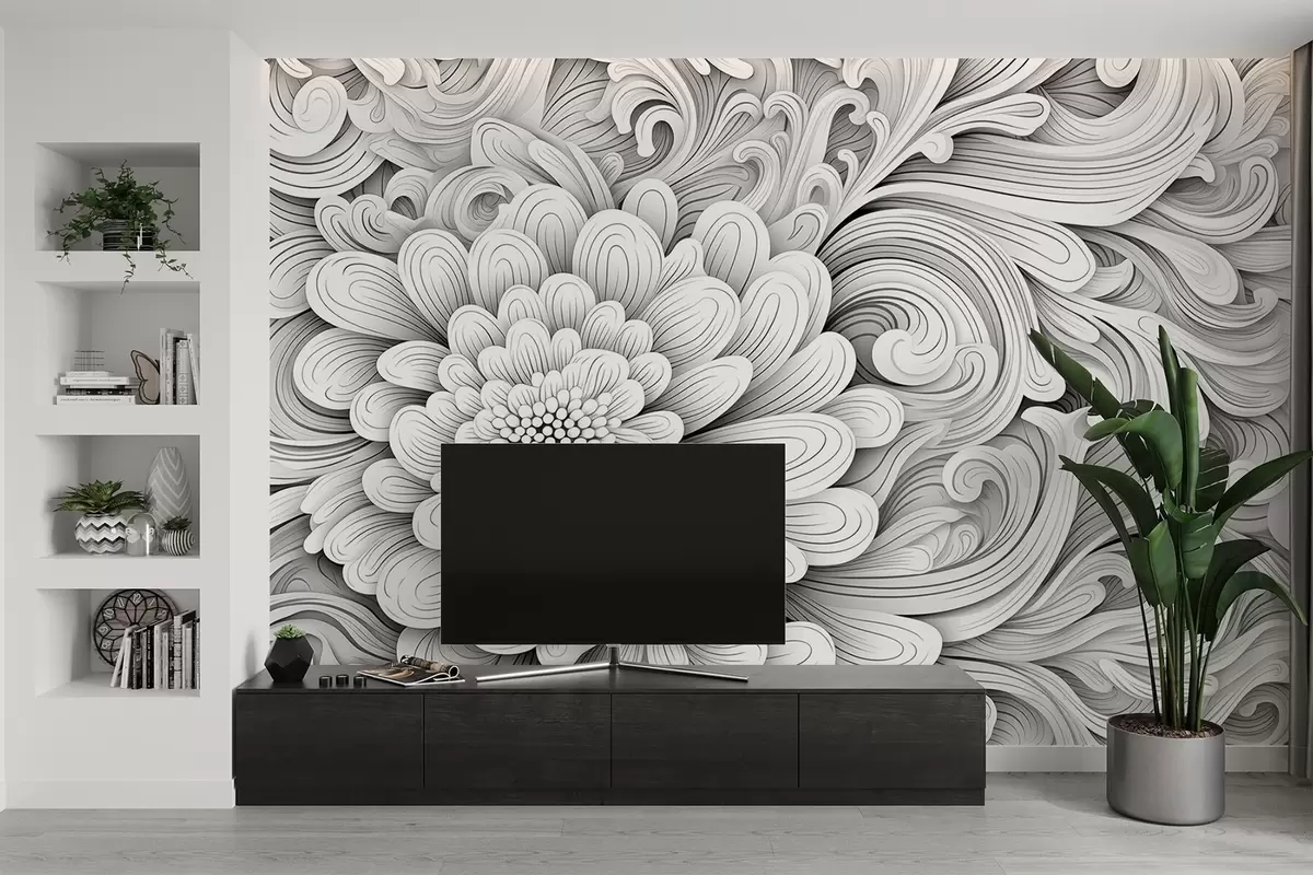 Murais de parede Padrão decorativo a preto e branco em forma de flor e redemoinhos Nr. w09355