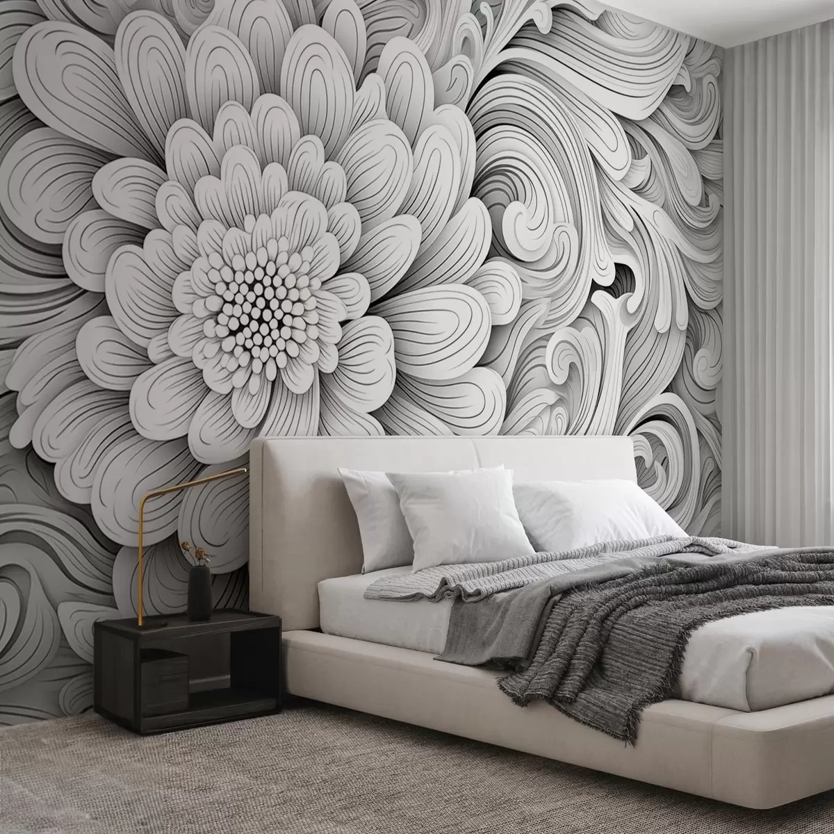Murais de parede Padrão decorativo a preto e branco em forma de flor e redemoinhos Nr. w09355
