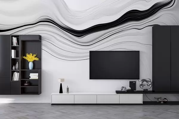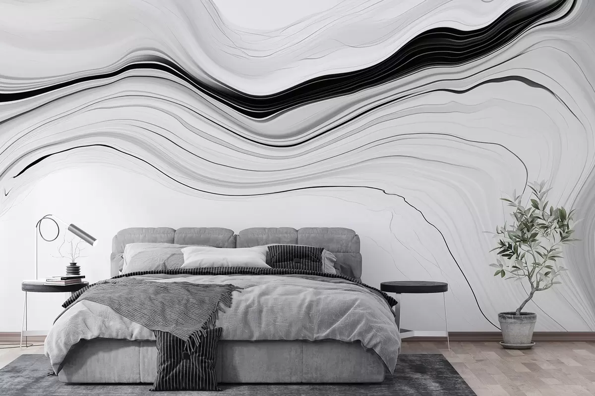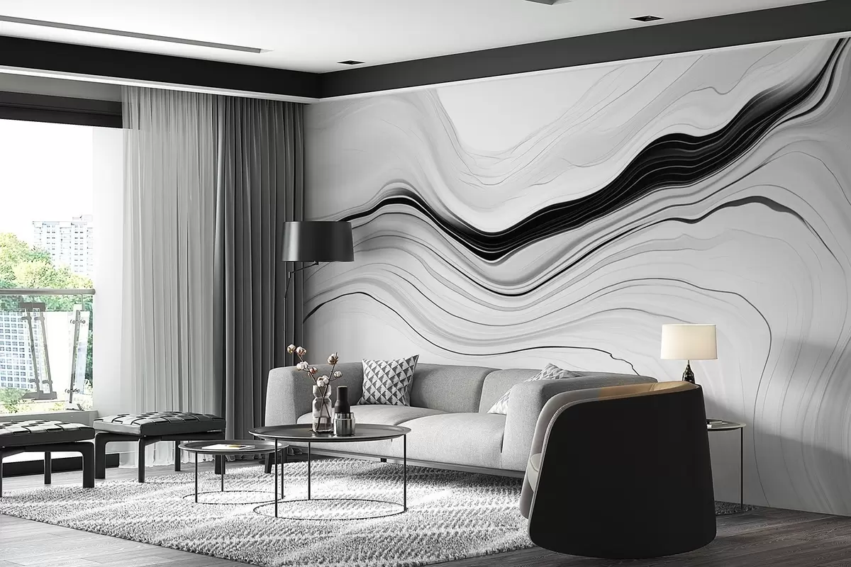 Murais de parede Padrão a preto e branco com o efeito de camadas de mármore Nr. w09358