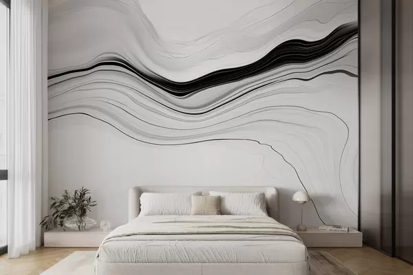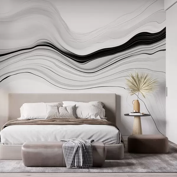 Murais de parede Padrão a preto e branco com o efeito de camadas de mármore Nr. w09358