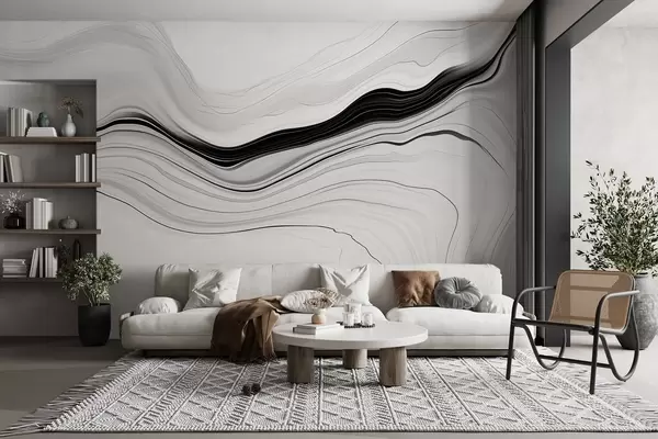 Murais de parede Padrão a preto e branco com o efeito de camadas de mármore Nr. w09358