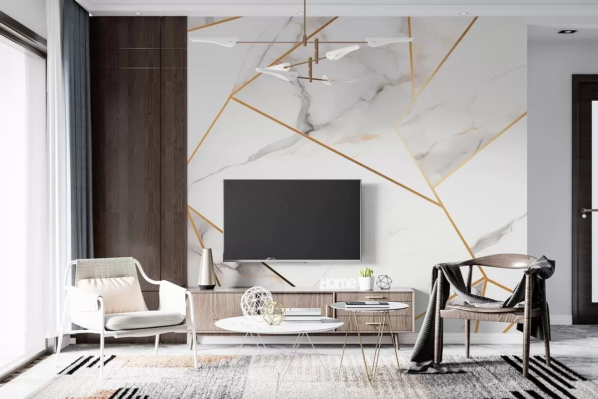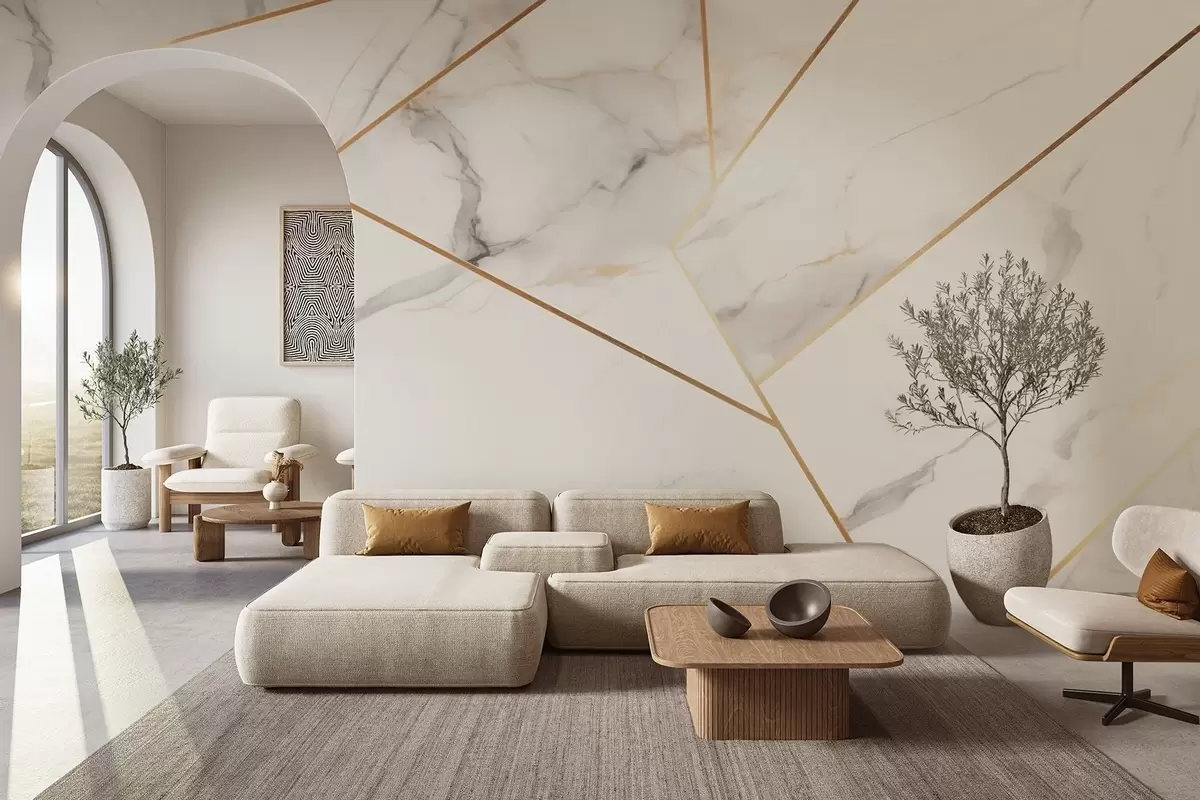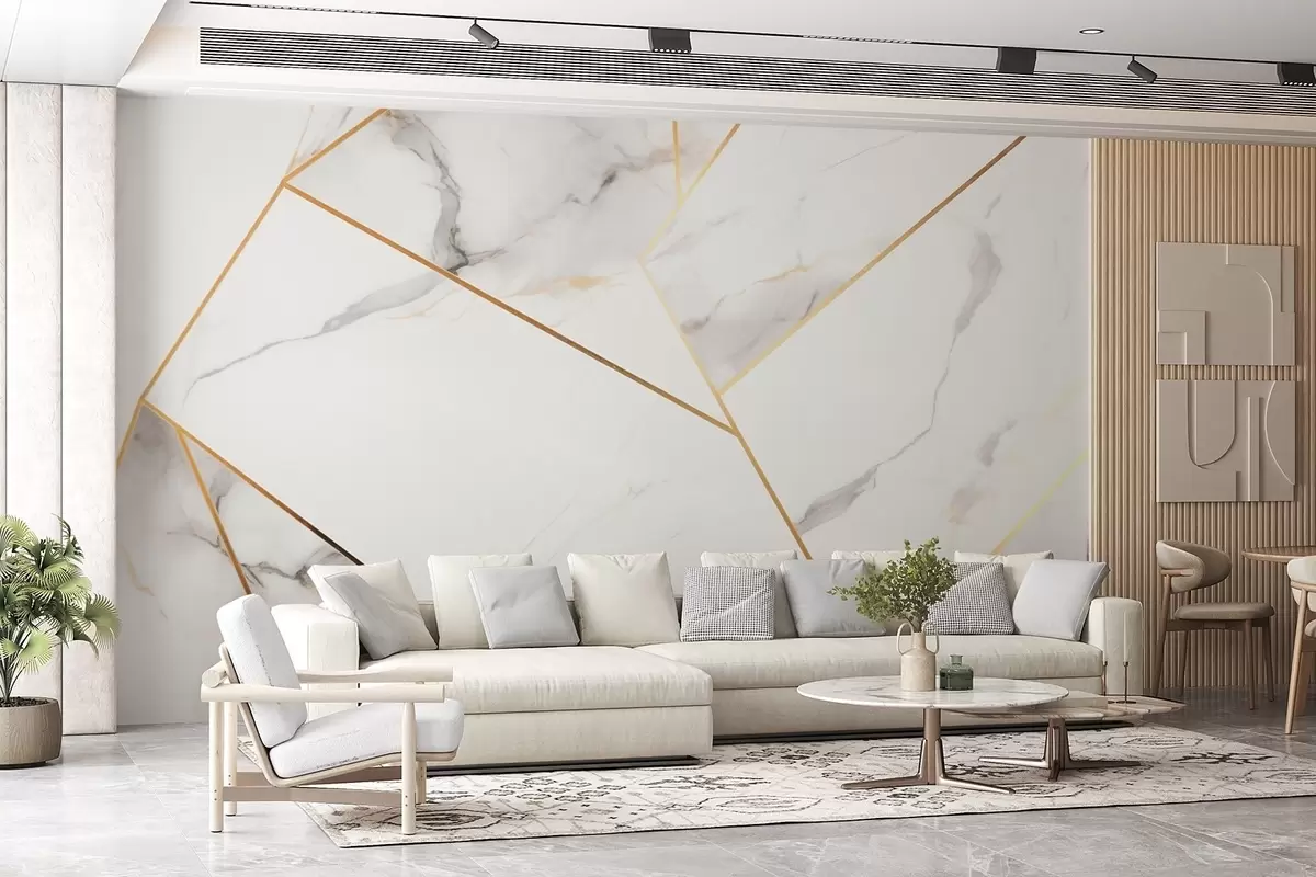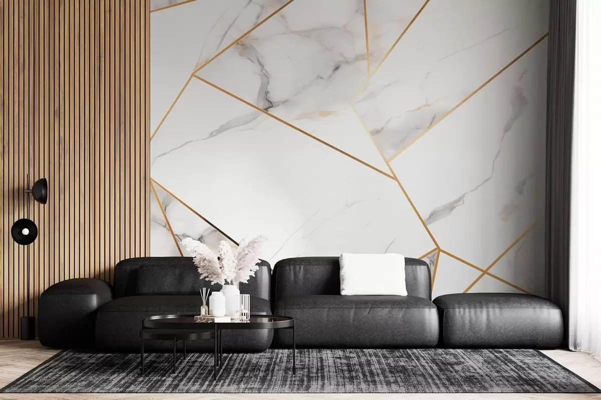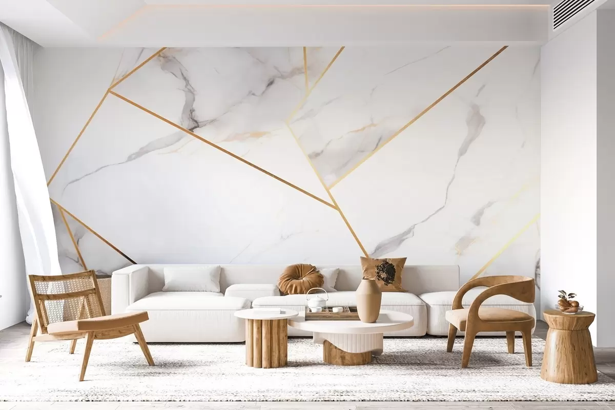 Murais de parede Imitação de uma superfície de mármore com um padrão geométrico amarelo Nr. w09363