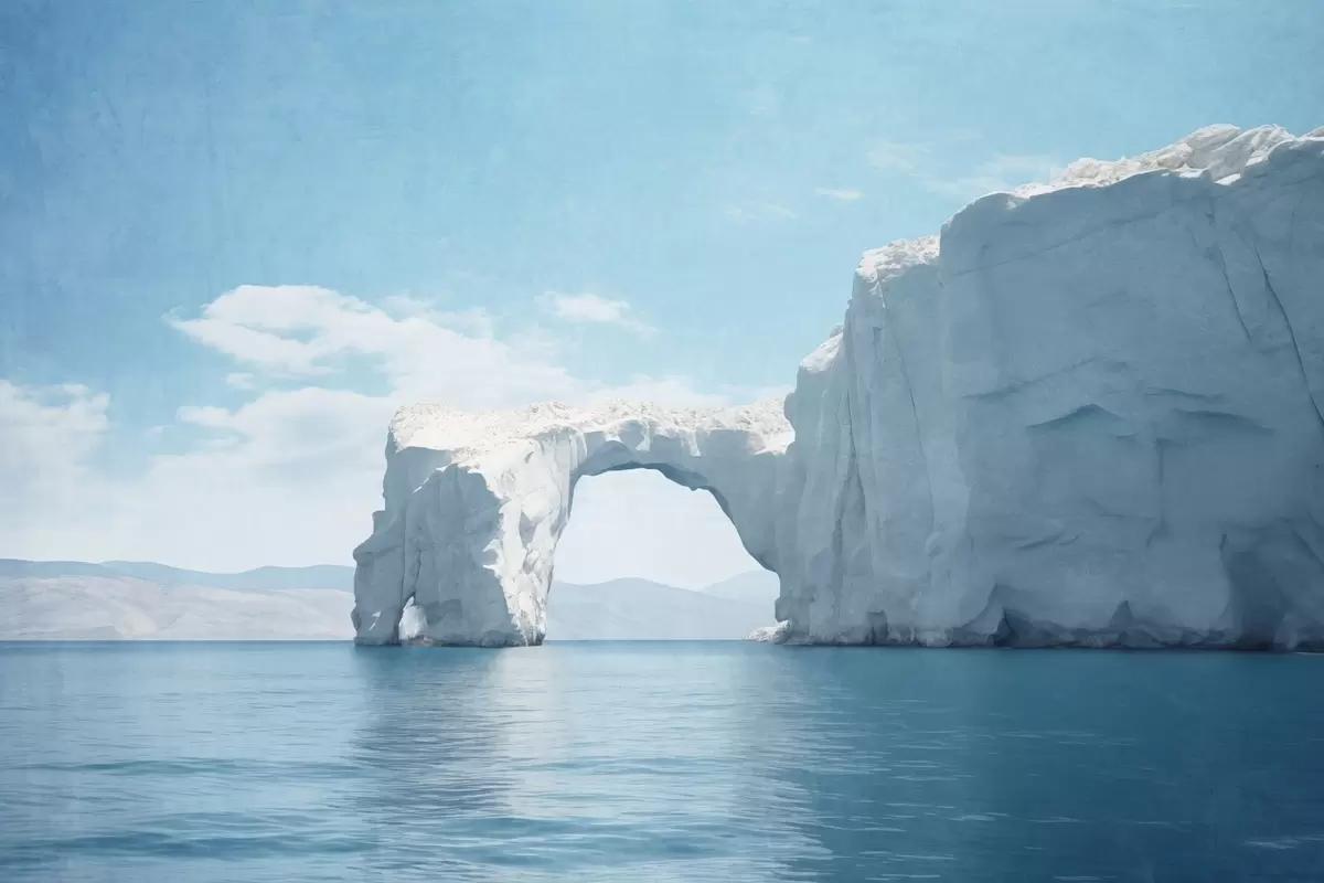 Murais de parede Paisagem com ponte de gelo natural sobre o oceano, céu azul claro com algumas nuvens, impressão texturada Nr. w09383
