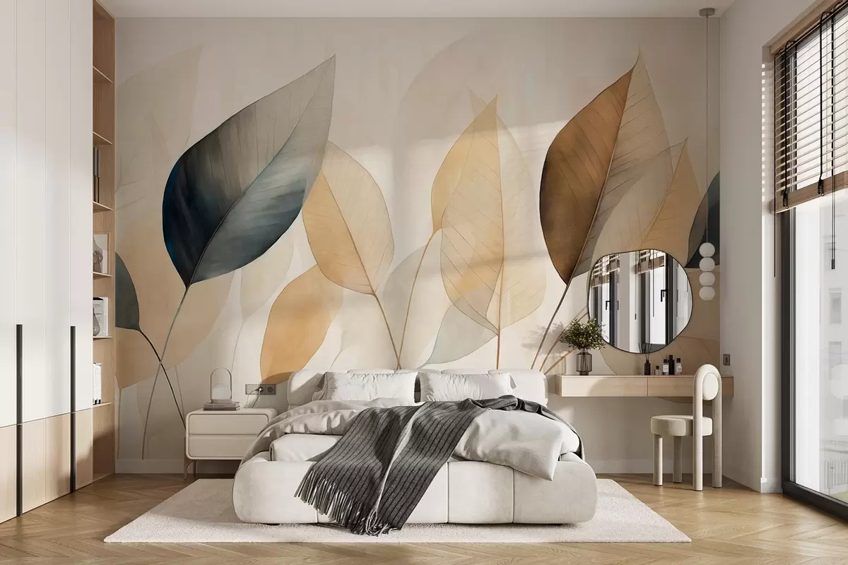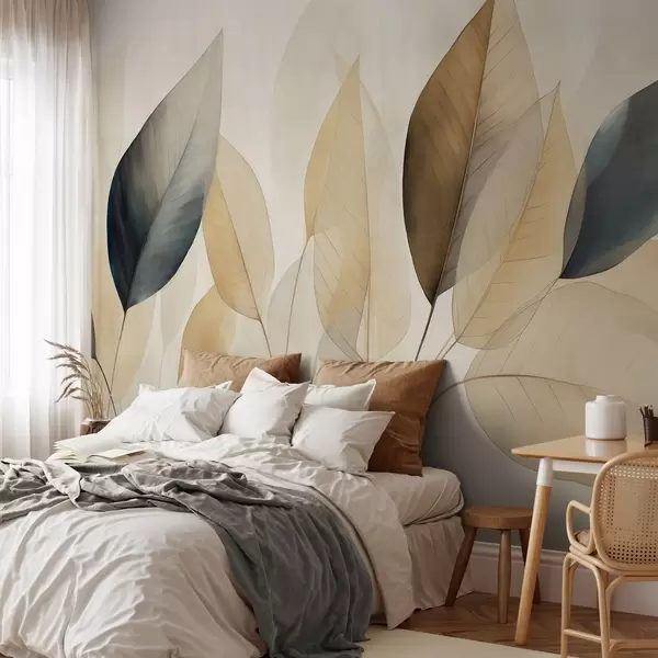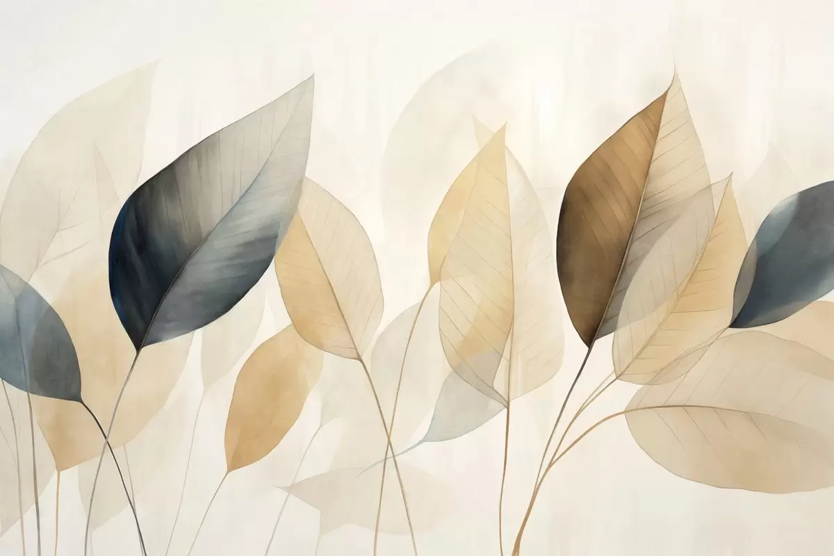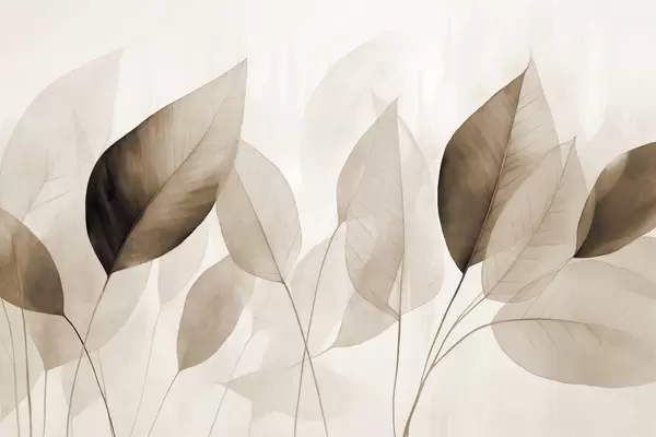 Murais de parede Pintura texturizada imitando folhas em tons de castanho, amarelo e cinzento, com veios e caules delicados Nr. w09400