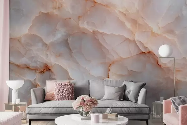 Murais de parede Imitação luxuosa de mármore em tons bege-cinza com efeito cintilante Nr. w09412