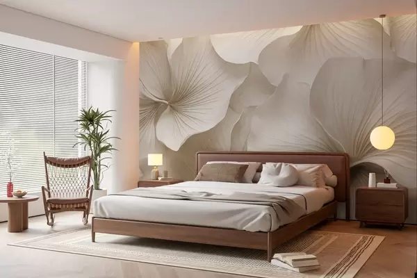 Murais de parede Folhas de ginkgo brancas e bege, textura suave, fundo floral abstrato, estilo minimalista moderno Nr. w09421v1