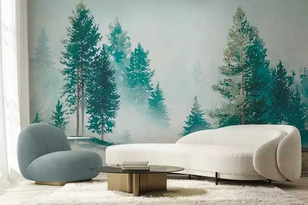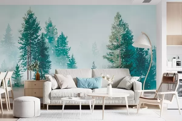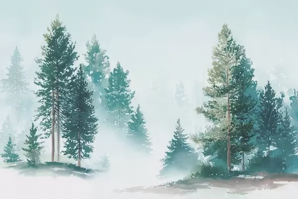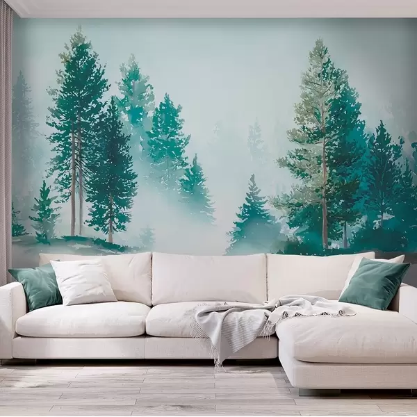 Murais de parede Floresta de pinheiros enevoada em estilo aquarela Nr. w09444