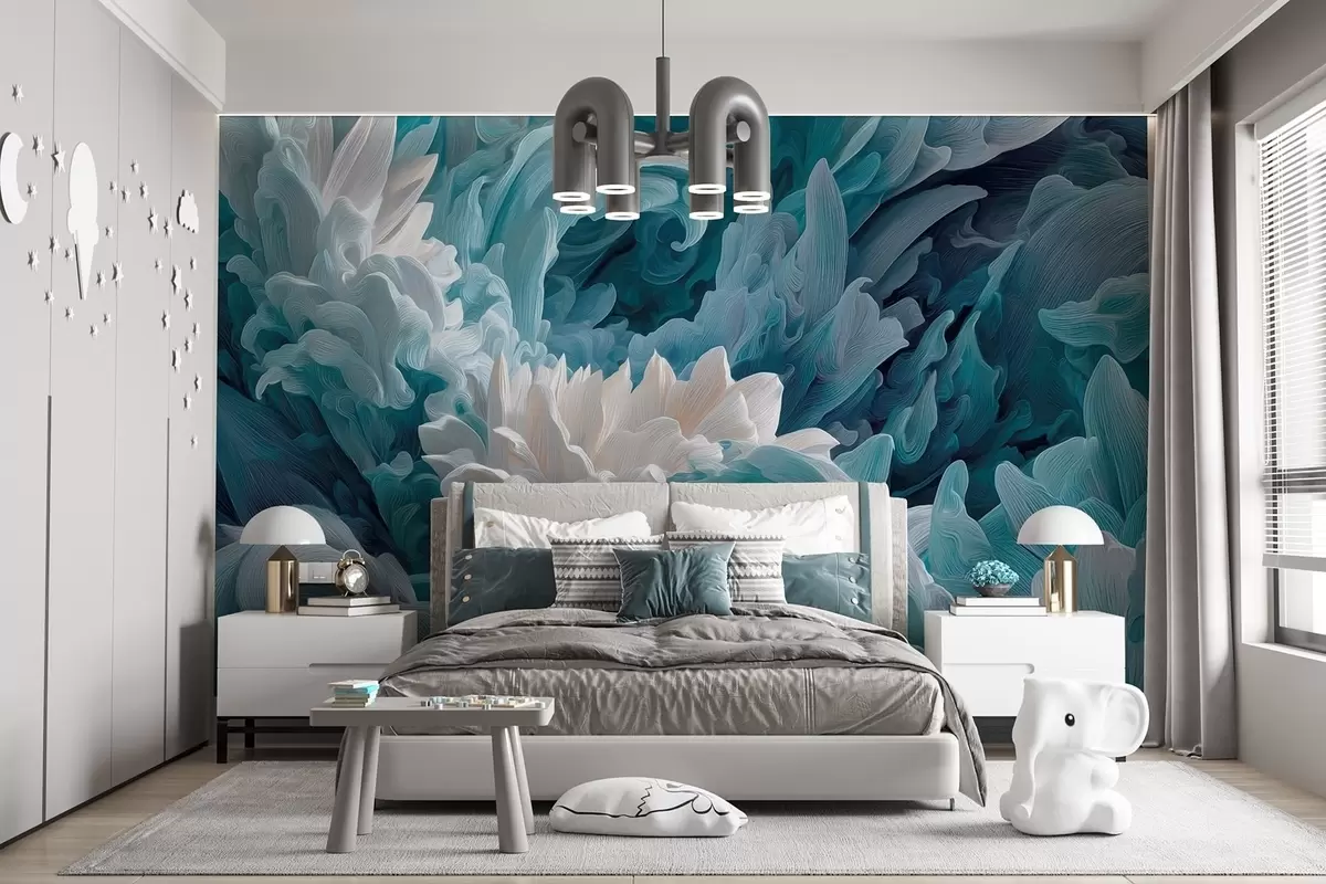Murais de parede Dança de pétalas e ondas do mar em tons de azul Nr. w09454