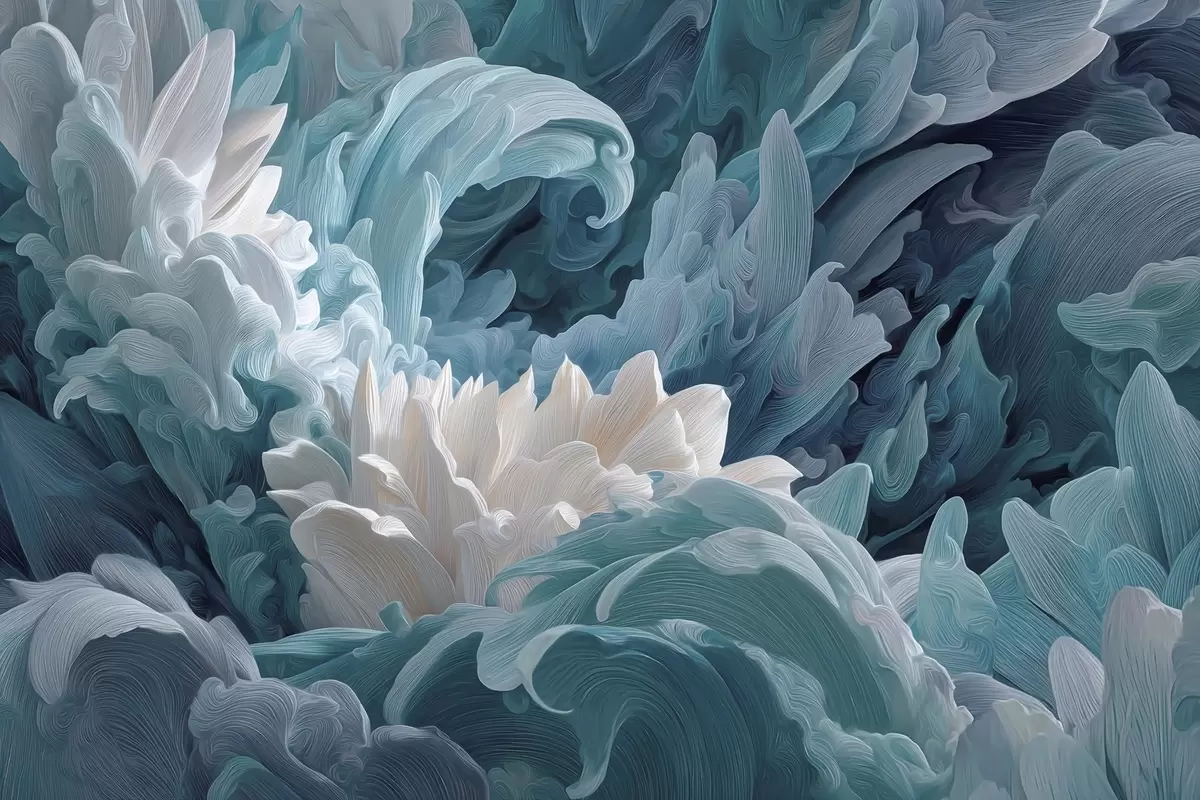 Murais de parede Dança de pétalas e ondas do mar em tons de azul Nr. w09454