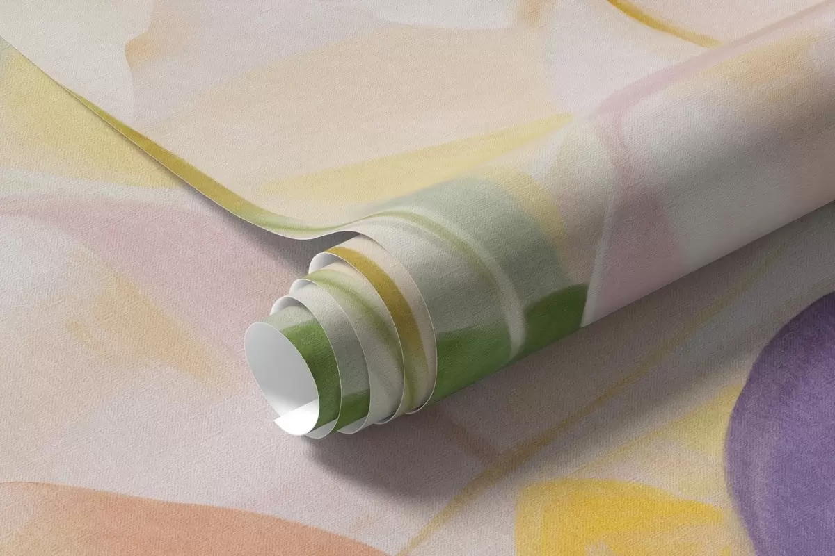 Murais de parede Campo abstrato de flores coloridas com hastes longas e folhas verdes, texturizado, em tons pastel e cores claras Nr. w09466