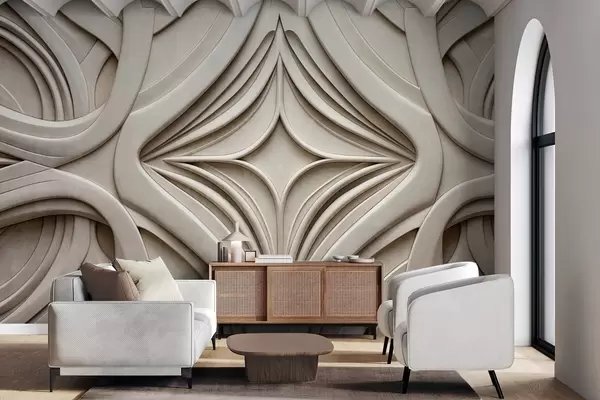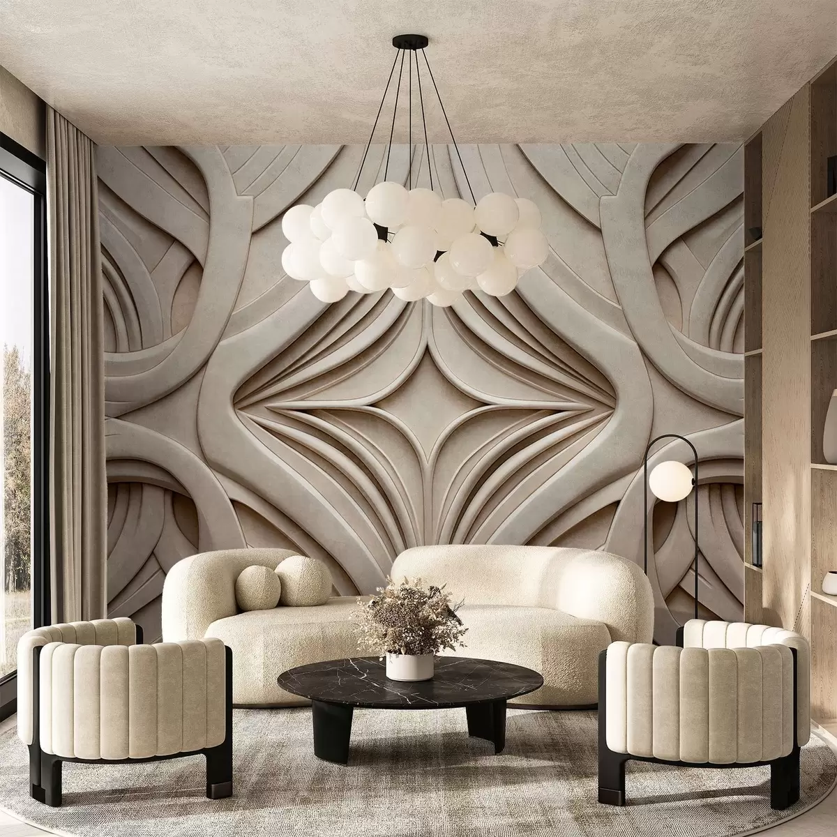 Murais de parede Estampa geométrica simétrica abstrata, cor bege claro, estilo art déco, detalhes intricados Nr. w09473