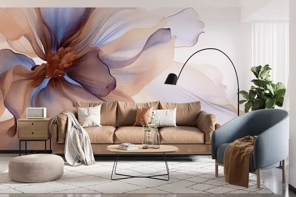 Murais de parede Flor detalhada com textura grande, com pétalas brancas, azuis e castanhas, sobre fundo branco Nr. w09498