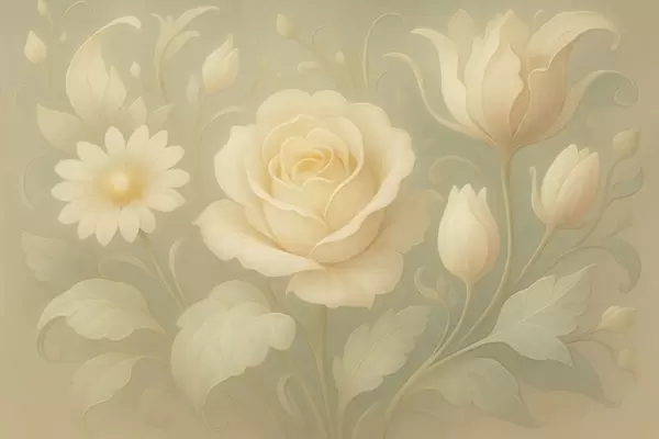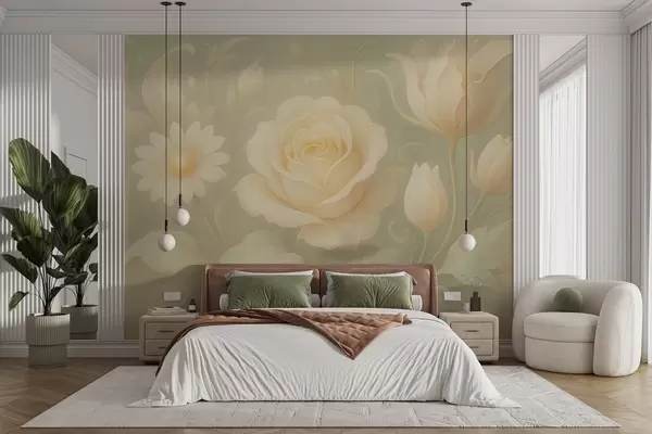 Murais de parede Delicada composição vintage com rosas bege sobre fundo verde claro Nr. w09499