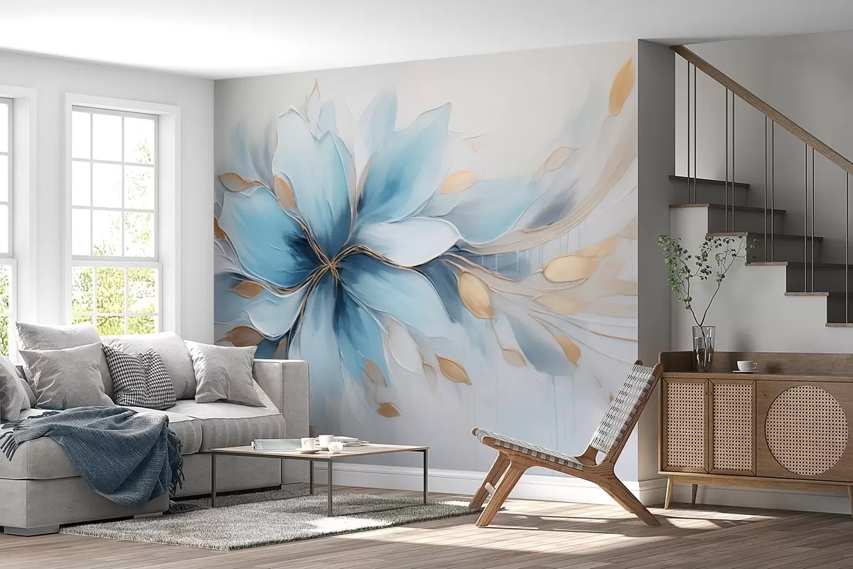 Murais de parede Flor azul abstrata de calma com folhas Nr. w09500