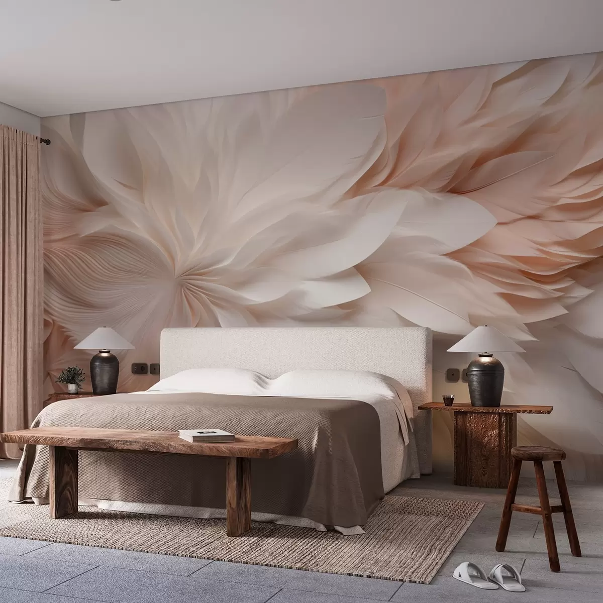 Murais de parede Delicadas penas abstratas em movimento em tons de bege e creme Nr. w09509