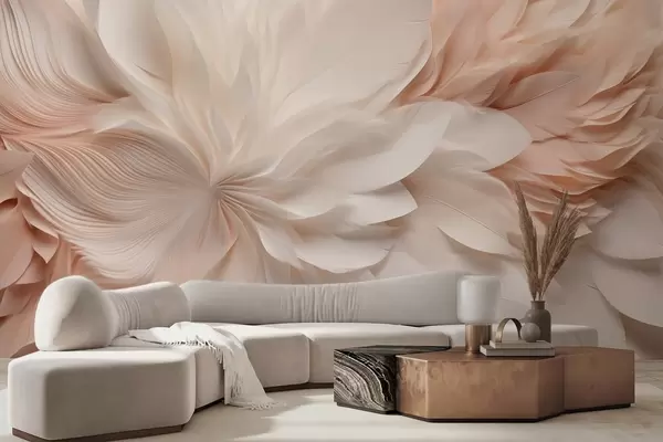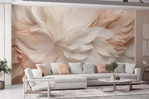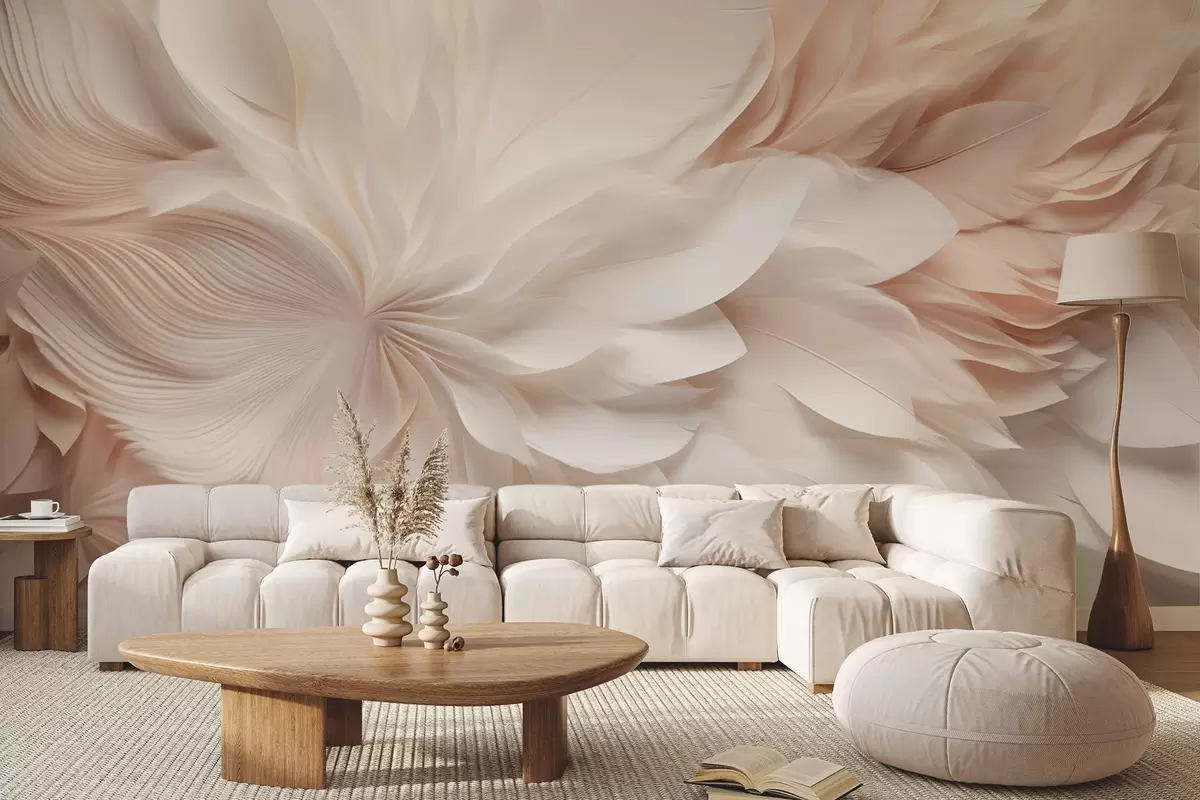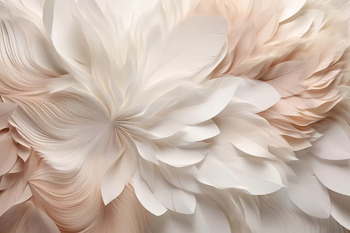 Murais de parede Delicadas penas abstratas em movimento em tons de bege e creme Nr. w09509