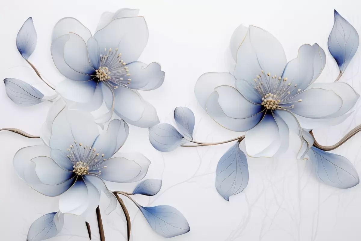 Murais de parede Elegante composição floral de magnólia em tons de azul Nr. w09520